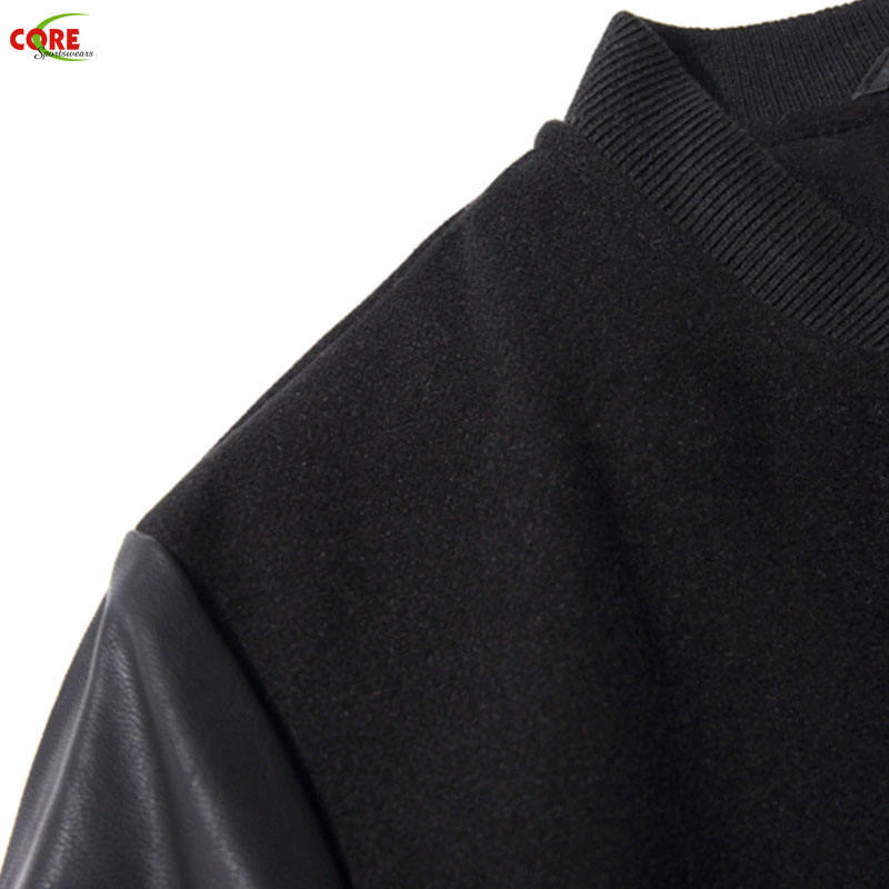 แจ็คเก็ตเบสบอล,แขนยาวสีดำหนังพียูสวมใส่สบายฤดูหนาว