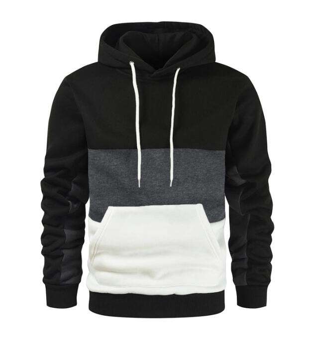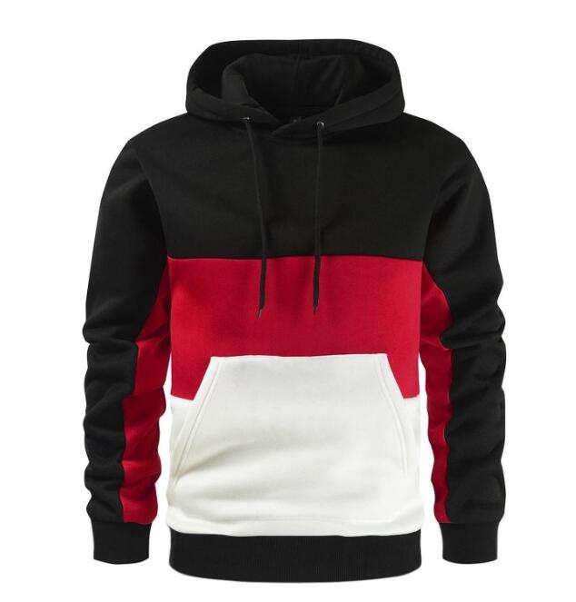 เสื้อฮู้ดสตรีทแวร์แบบใหม่สำหรับฤดูหนาว ลายปะติด ฮู้ดแบบสวมหัว สกรีนโลโก้และออกแบบเองได้ สีบล็อก แขนยาว สำหรับผู้ชาย