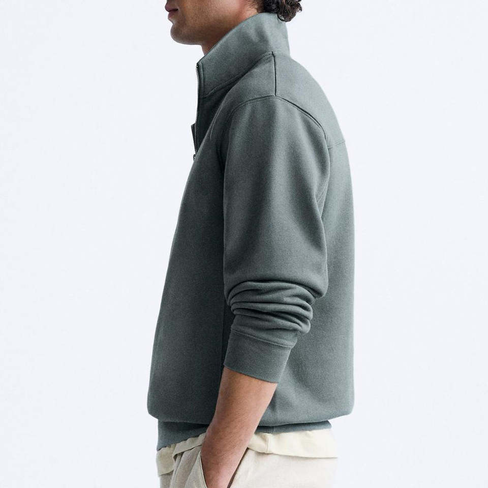เสื้อสเวตเชิ้ตผู้ชายแบบซิปครึ่งตัวสำหรับฤดูหนาวใหม่ น้ำหนักเบา ผ้าโพลีเอสเตอร์ 100% เป็นมิตรกับสิ่งแวดล้อม ระบายอากาศได้ดี สวมใส่สบาย ทันสมัย มีสไตล์