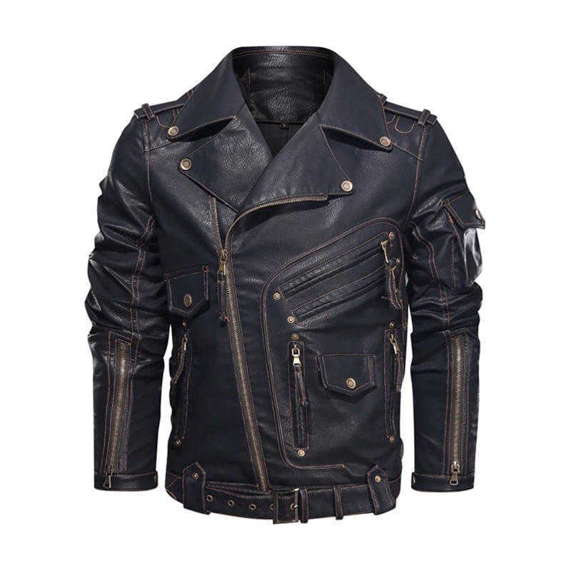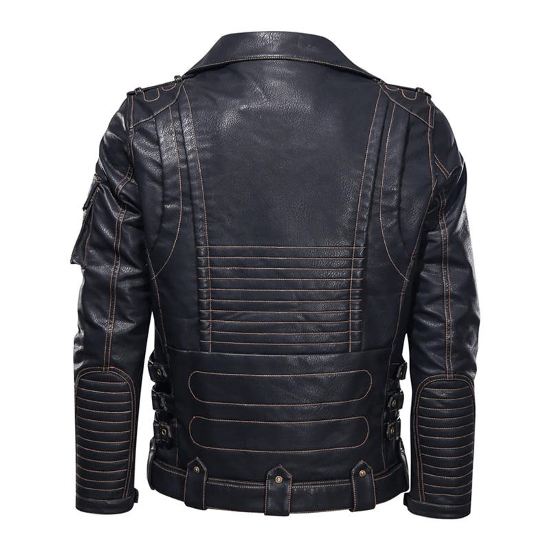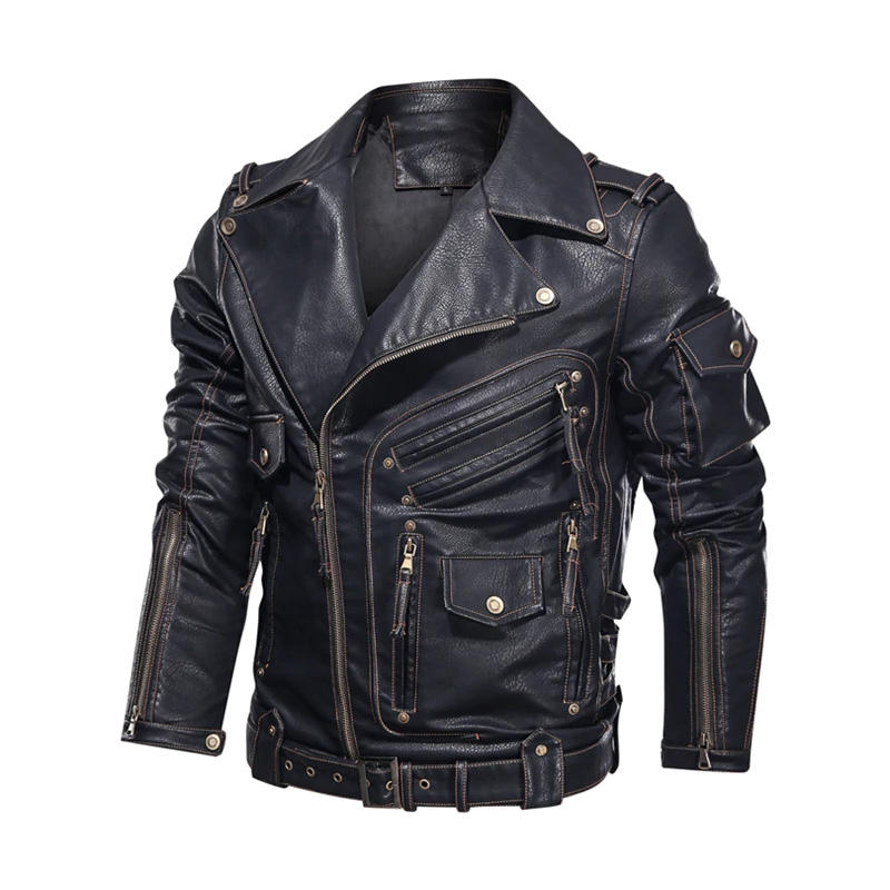 แจ็คเก็ตหนังผู้ชายแฟชั่นฤดูหนาวใหม่ แจ็คเก็ตหนัง PU สำหรับขี่มอเตอร์ไซค์ เท่ห์ มีซิปและกระเป๋าเสื้อโค้ทหนัง