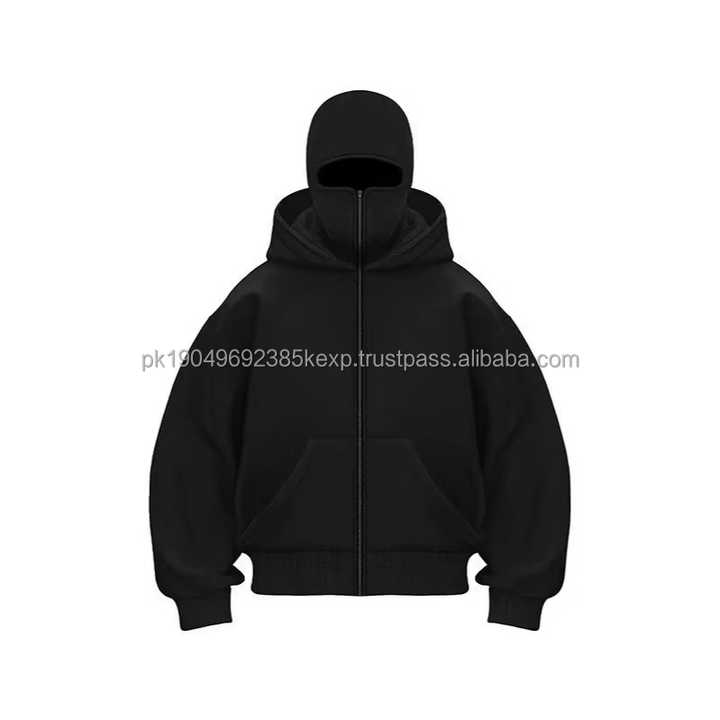 เสื้อฮู้ดดี้แบบมีฮู้ดสองชั้น ลายโลโก้สั่งทำพิเศษ สำหรับฤดูใบไม้ร่วงและฤดูหนาว แบบมีซิป พร้อมหน้ากากคลุมหน้า สำหรับผู้ชายและผู้หญิง