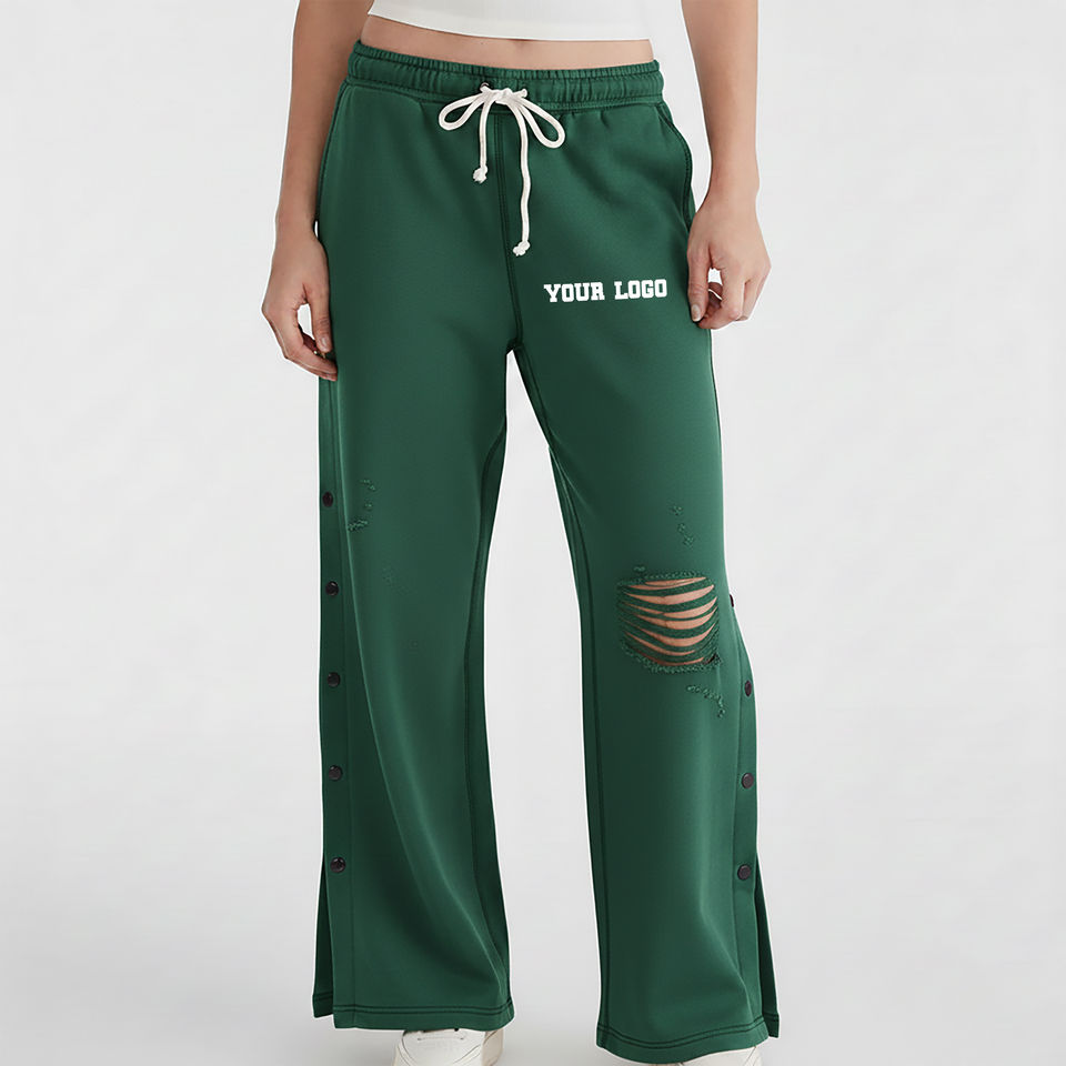 กางเกงวอร์มแฟชั่นขนเฟลซคุณภาพสูงสำหรับฤดูหนาวใหม่ ปักโลโก้ได้ตามสั่ง สไตล์สตรีทแวร์ขาดๆ ทรงขากว้าง