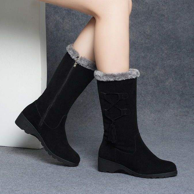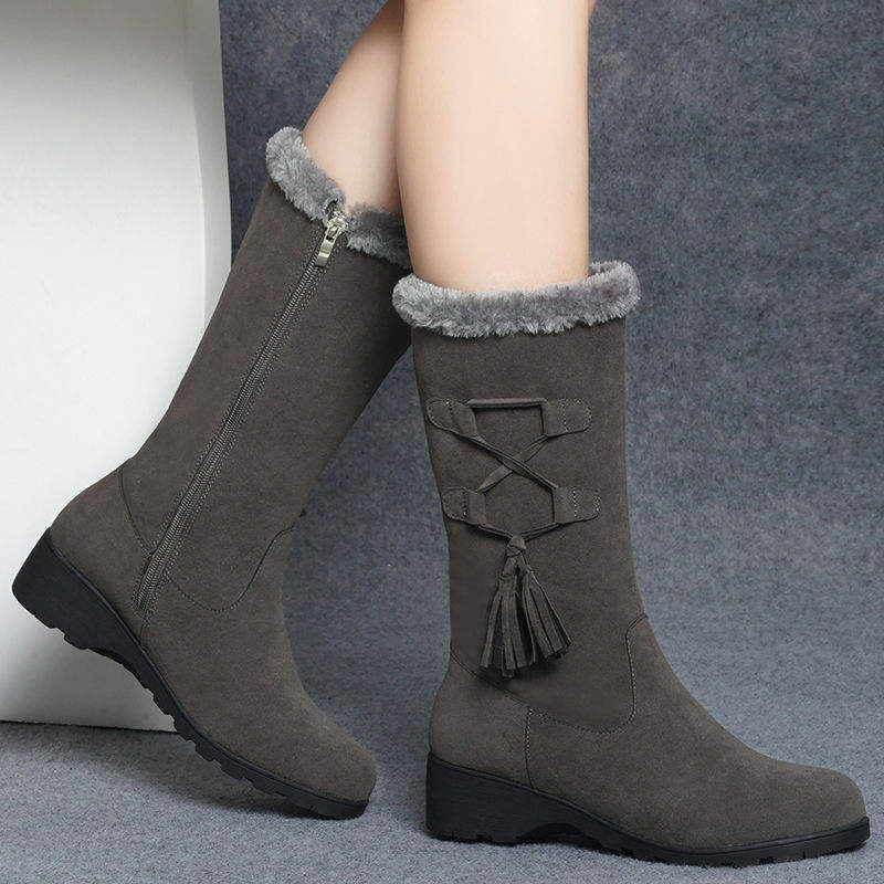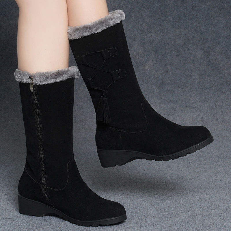 รองเท้าบูทหิมะผู้หญิงแบบหนาพิเศษสำหรับฤดูหนาว รองเท้าบูทหุ้มข้อกลางน่องแบบอุ่นสบาย สไตล์นอร์ดิก บุผ้าฝ้ายอเนกประสงค์ บุขนแกะเพิ่มความหนา รองเท้าบูทสั้น