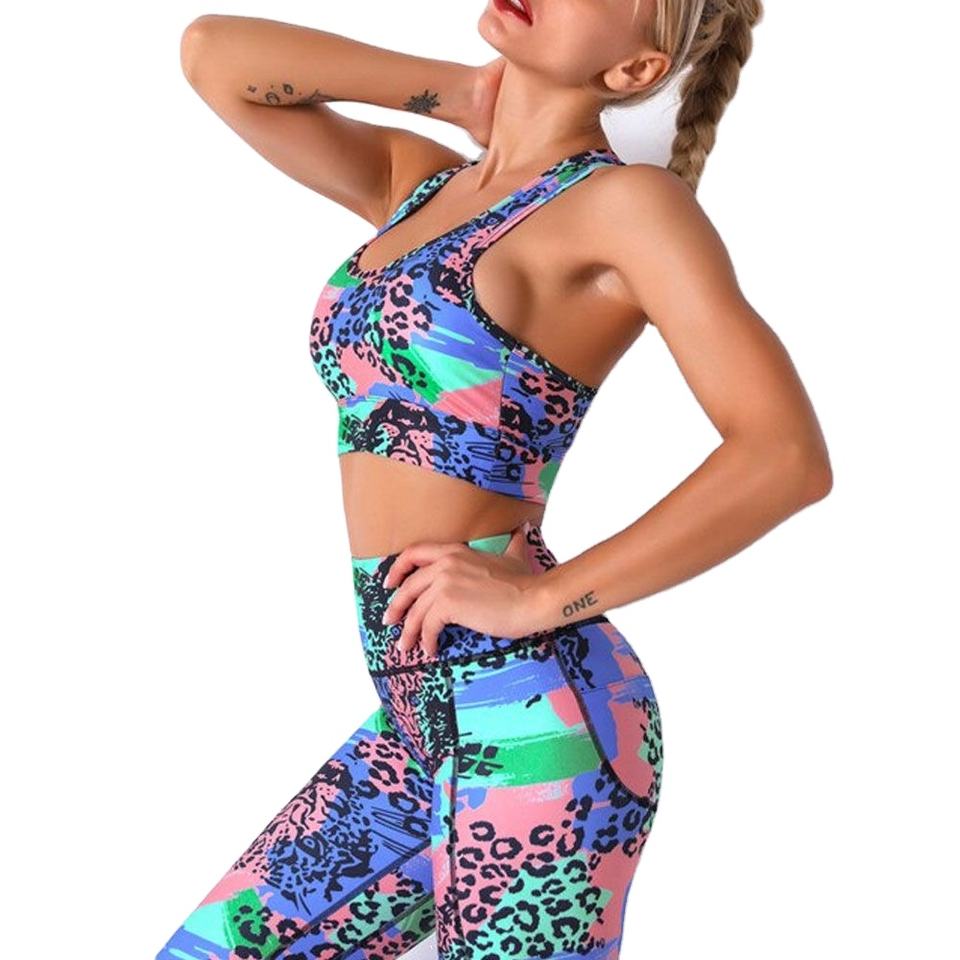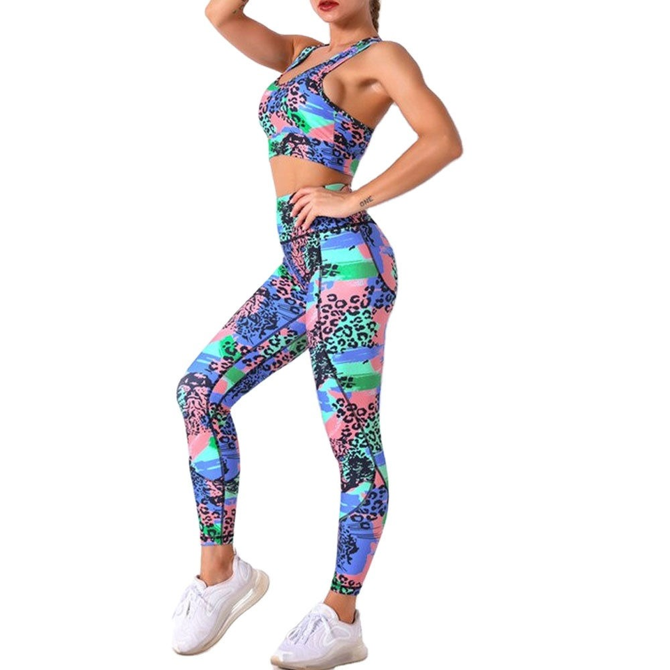 ชุดโยคะผ้าฝ้ายลำลองสำหรับผู้หญิงแบบใหม่ ชุดสองชิ้น กางเกงเลกกิ้งและสปอร์ตบราไร้ตะเข็บ ยืดหยุ่น ระบายอากาศได้ดี ชุดออกกำลังกายเอวสูง