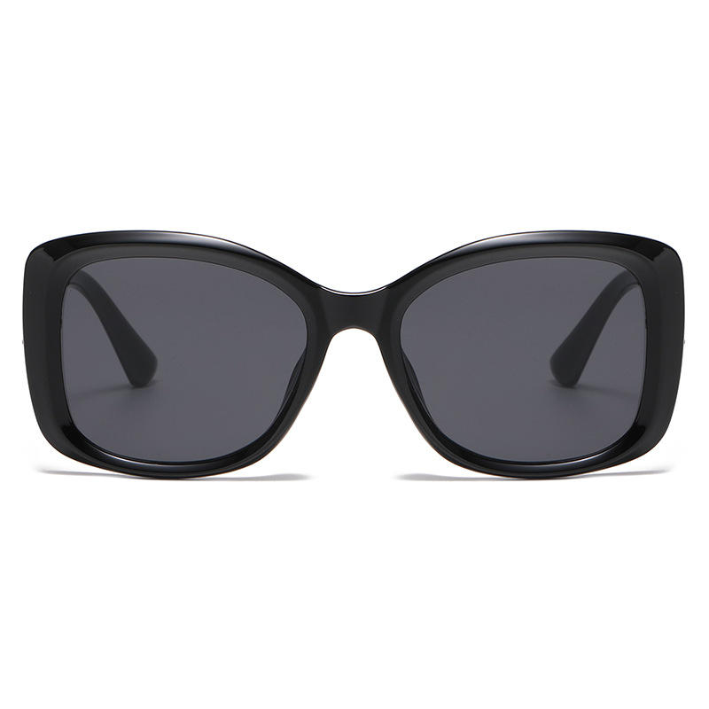 ใหม่แว่นกันแดดผู้หญิงทรงแคทอายสีดำกรอบขนาดใหญ่ป้องกันรังสียูวี 400 กรอบพลาสติกและโลหะคลาส 2 ร่มกันแดด RG 99065