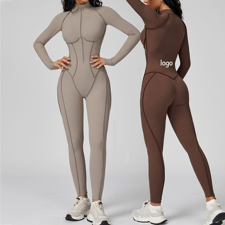 ชุดบอดี้สูทโยคะผู้หญิงแบบใหม่ ชุดลำลอง ชุดจั๊มสูทขายาวสำหรับออกกำลังกาย ชุดเซ็ต 2 ชิ้น ไซส์ใหญ่ กันน้ำ