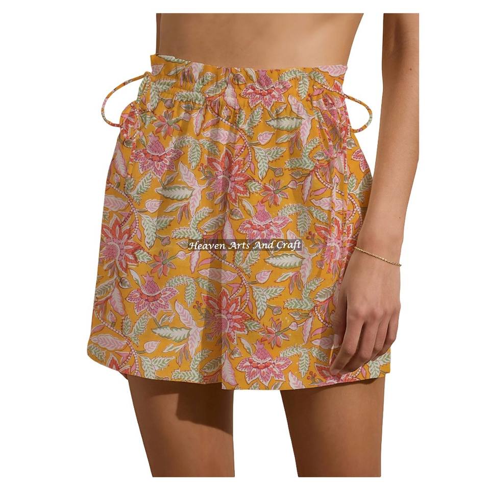 กางเกงขาสั้นพิมพ์ลายสำหรับผู้หญิง ดีไซน์ใหม่ ผ้าฝ้าย 100% พิมพ์ลายด้วยมือ เหมาะสำหรับใส่ช่วงวันหยุดสุดสัปดาห์