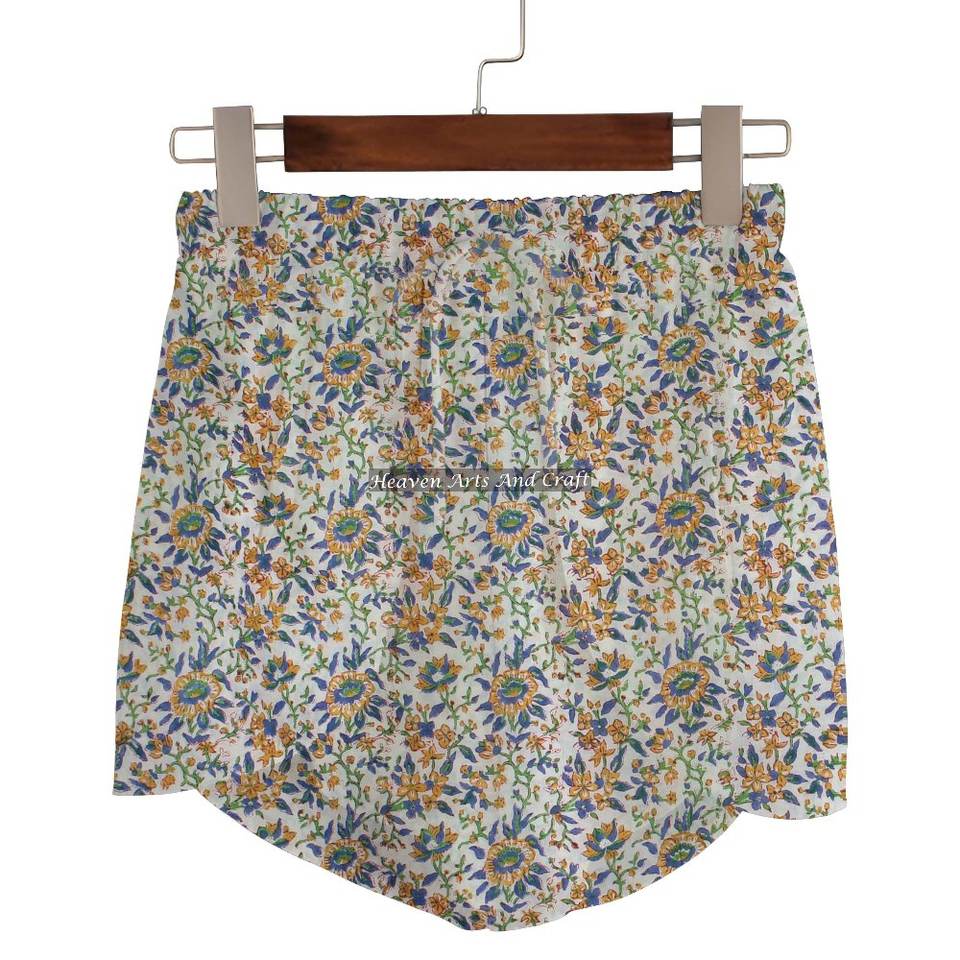 ชื่อสินค้า:กางเกงขาสั้นผ้าฝ้าย 100% พิมพ์ลายบล็อกมือ