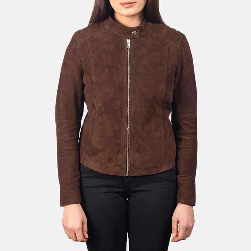 แจ็คเก็ตนักขี่จักรยานหนังแท้ผู้หญิงใหม่ฤดูใบไม้ร่วงแขนยาวลำลองเข้ารูปมีซิปผ้าซาตินสีทึบใส่กลับด้านได้กันลม