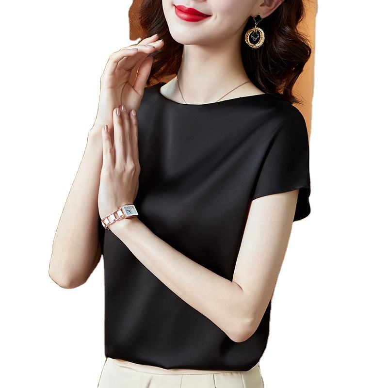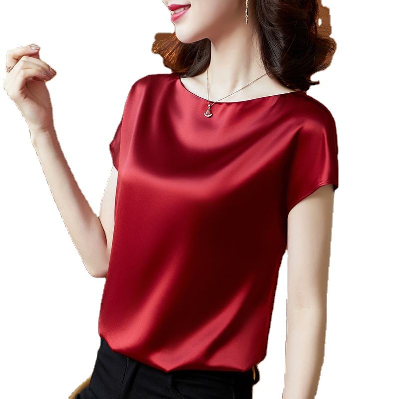 ใหม่ผู้หญิงสไตล์เงาผ้าไหมธรรมดาเสื้อยืด2021