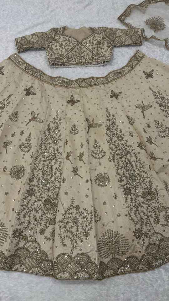 ชุดเลเฮนกาผ้าไหมสลับเนื้อหนาสำหรับงานแต่งงานสำหรับผู้หญิง พร้อมเลเฮนกาโชลีประดับเลื่อมดอริและงานปักดิ้นทอง พร้อมผ้าคลุมไหล่ประดับเลื่อมดอริ
