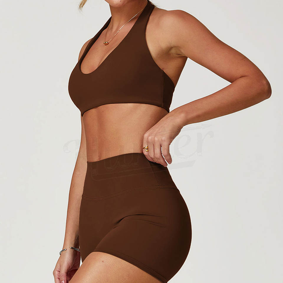 ชุดกีฬา2ชิ้นสำหรับผู้หญิงใหม่เซตฟิตเนสยิมกางเกงขาสั้นและบราออกกำลังกายสำหรับผู้หญิง