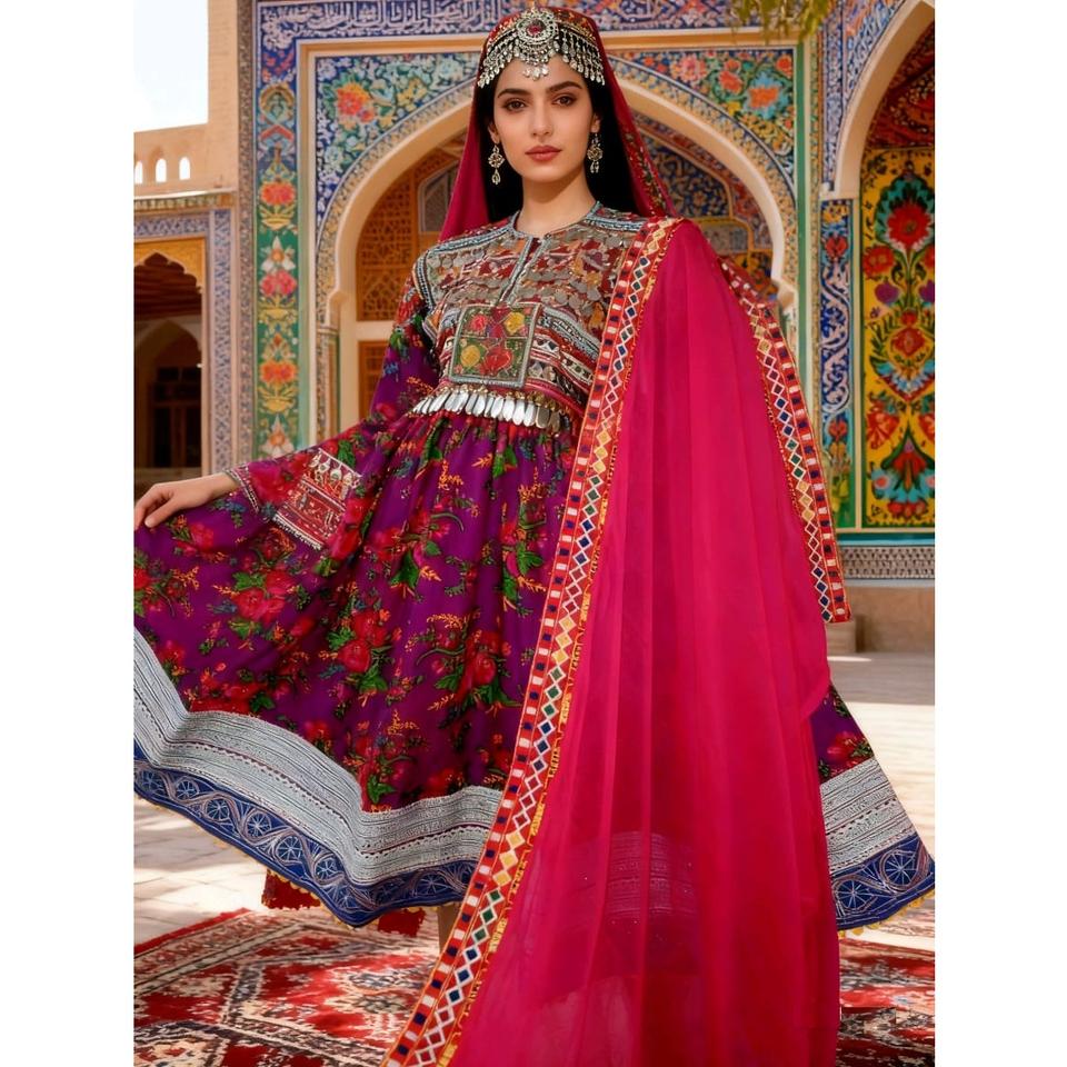 ชุดเดรสวินเทจสีสวยงามสไตล์ชนเผ่ากุจิอัฟกานิสถานสำหรับผู้หญิง ผ้าวิสโคสยาวคลุมเท้า ซึมซับความชื้น แห้งเร็ว แบบบันจารา