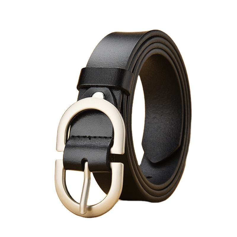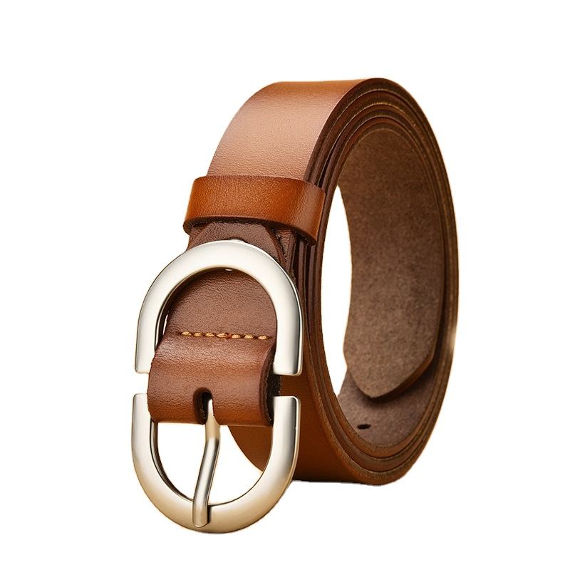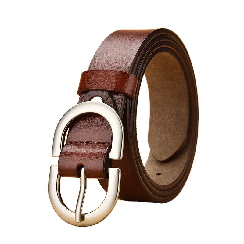 ใหม่เข็มขัดผู้หญิงหนังแท้สำหรับผู้หญิงเข็มขัดหัวกลมโลหะเข็มขัดกางเกงยีนส์สุดหรู