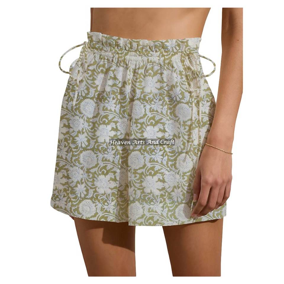 กางเกงขาสั้นผู้หญิงทรงสบาย ผ้าฝ้ายพิมพ์ลายด้วยมือ ระบายอากาศได้ดี เหมาะสำหรับวันหยุดสุดสัปดาห์ ขายส่งเสื้อผ้าแฟชั่น
