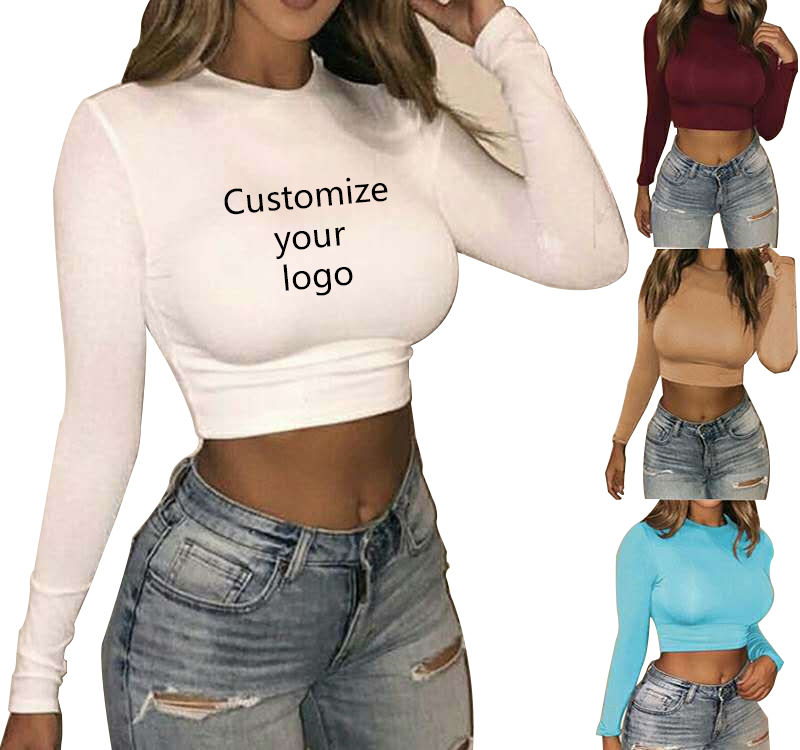 เสื้อยืดเอวลอยระบายอากาศเข้ารูปพิมพ์ลายพัฟโลโก้แบบกำหนดเองสำหรับผู้หญิงใหม่ฤดูร้อน