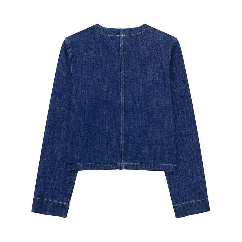 แจ็กเก็ตผ้ายีนส์สำหรับผู้หญิงใหม่แจ็คเก็ตยีนส์สั้นลำลองสำหรับ2025ฤดูใบไม้ผลิและฤดูใบไม้ร่วงเสื้อแจ็กเก็ตสีพื้นแบบเกาหลี