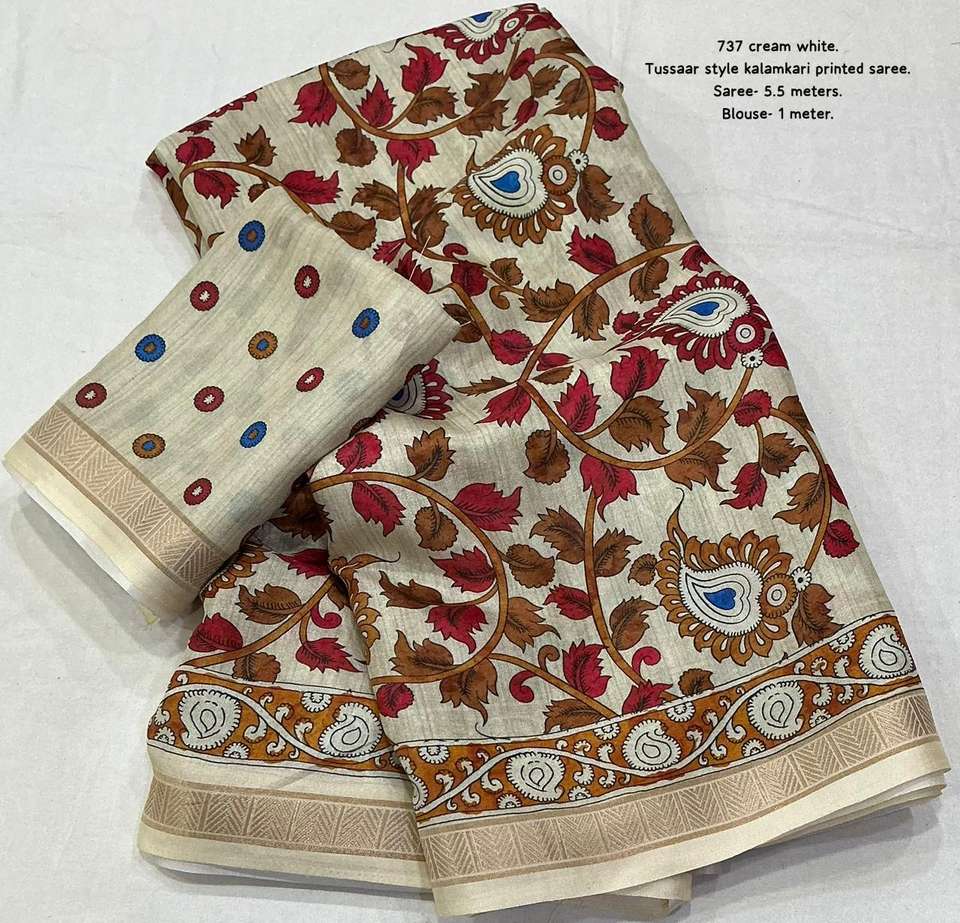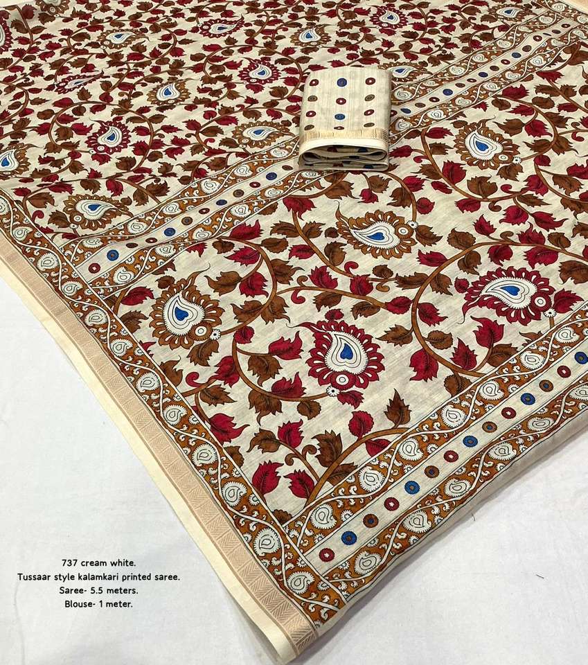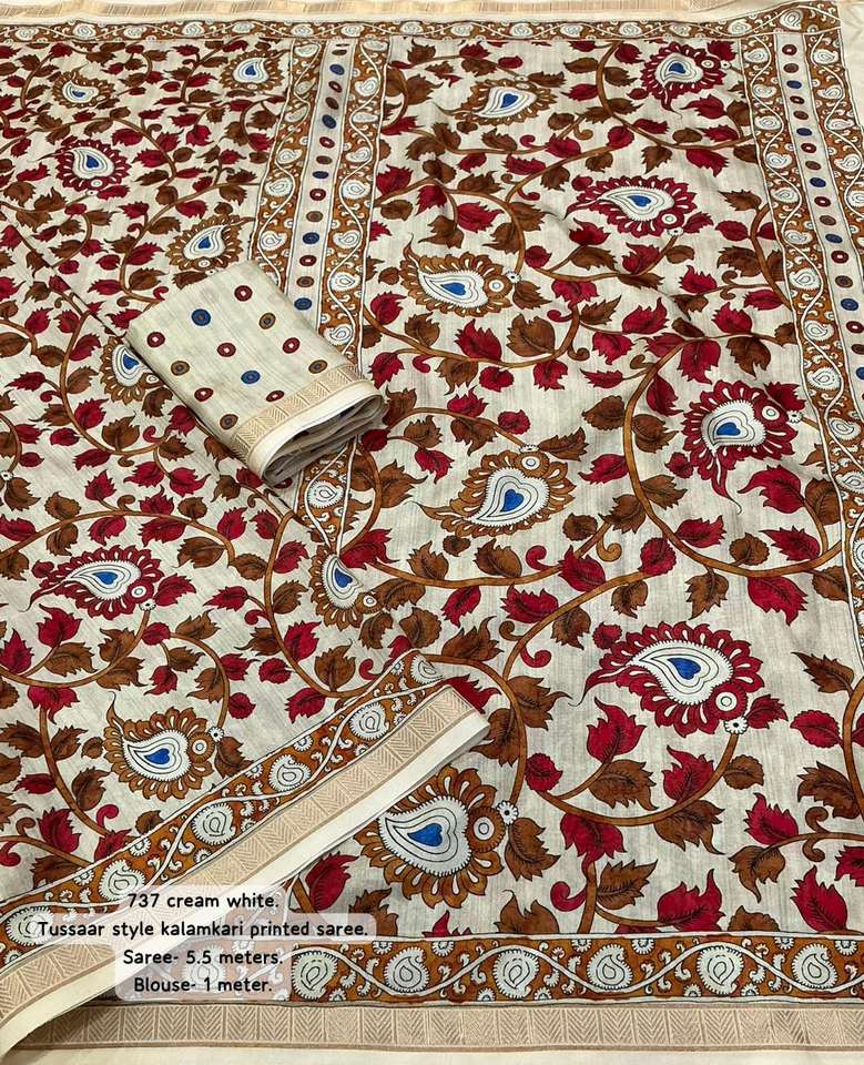 ผ้าส่าหรีแบบกามล์คารีสไตล์ทัสซาร์สำหรับผู้หญิง ผ้าเนื้อนุ่มแบบกึ่งทัสซาร์ พร้อมขอบปักลายซารีแบบแพตตู