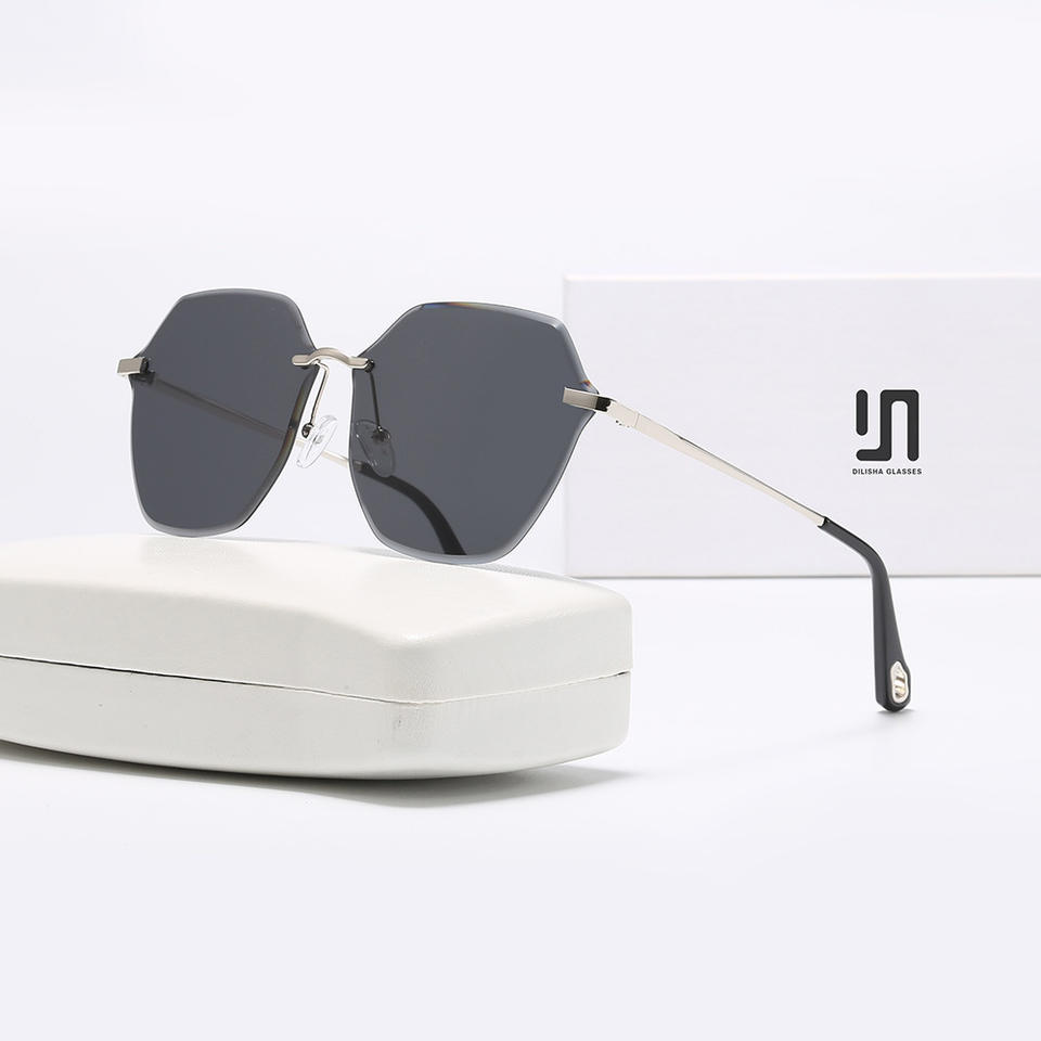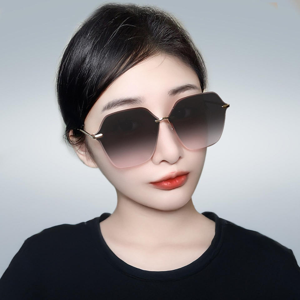 แว่นกันแดดผู้หญิงแบบไร้กรอบไล่เฉดสี UV400 โลหะสีดำ เลนส์ PC แบบที่ 3 รุ่น 901 ผลิตที่ไถโจว