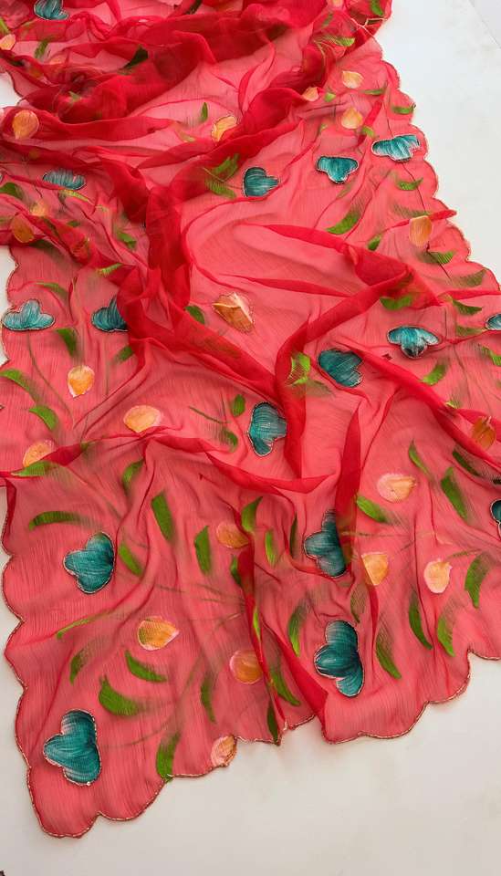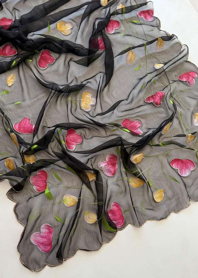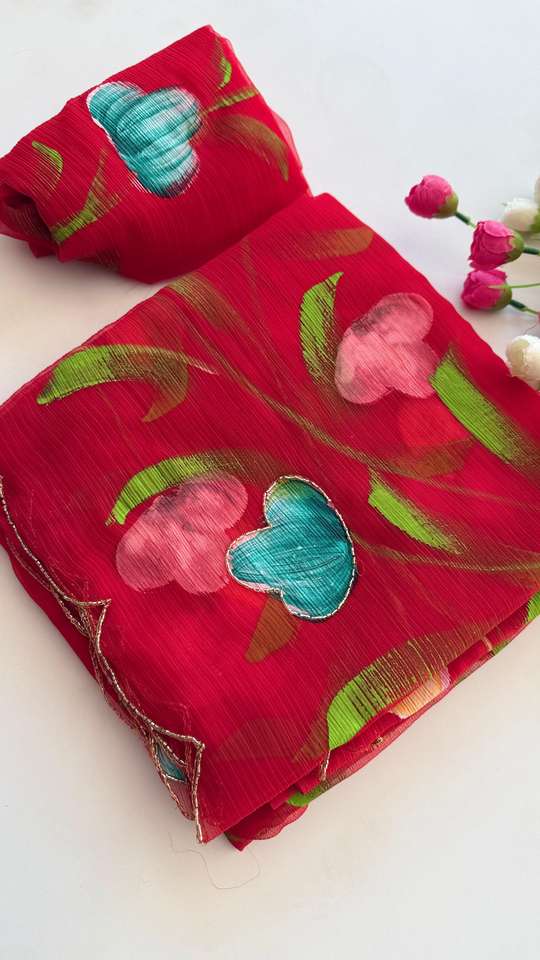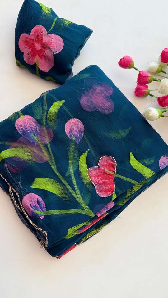 ผ้าซิ่นชีฟองไหมอินเดียสำหรับผู้หญิงแบบใหม่ งานปักลายดอกไม้และงานฝีมือ มีสินค้าในสต็อก