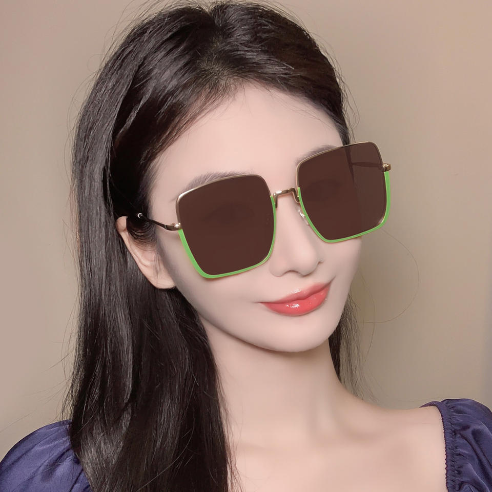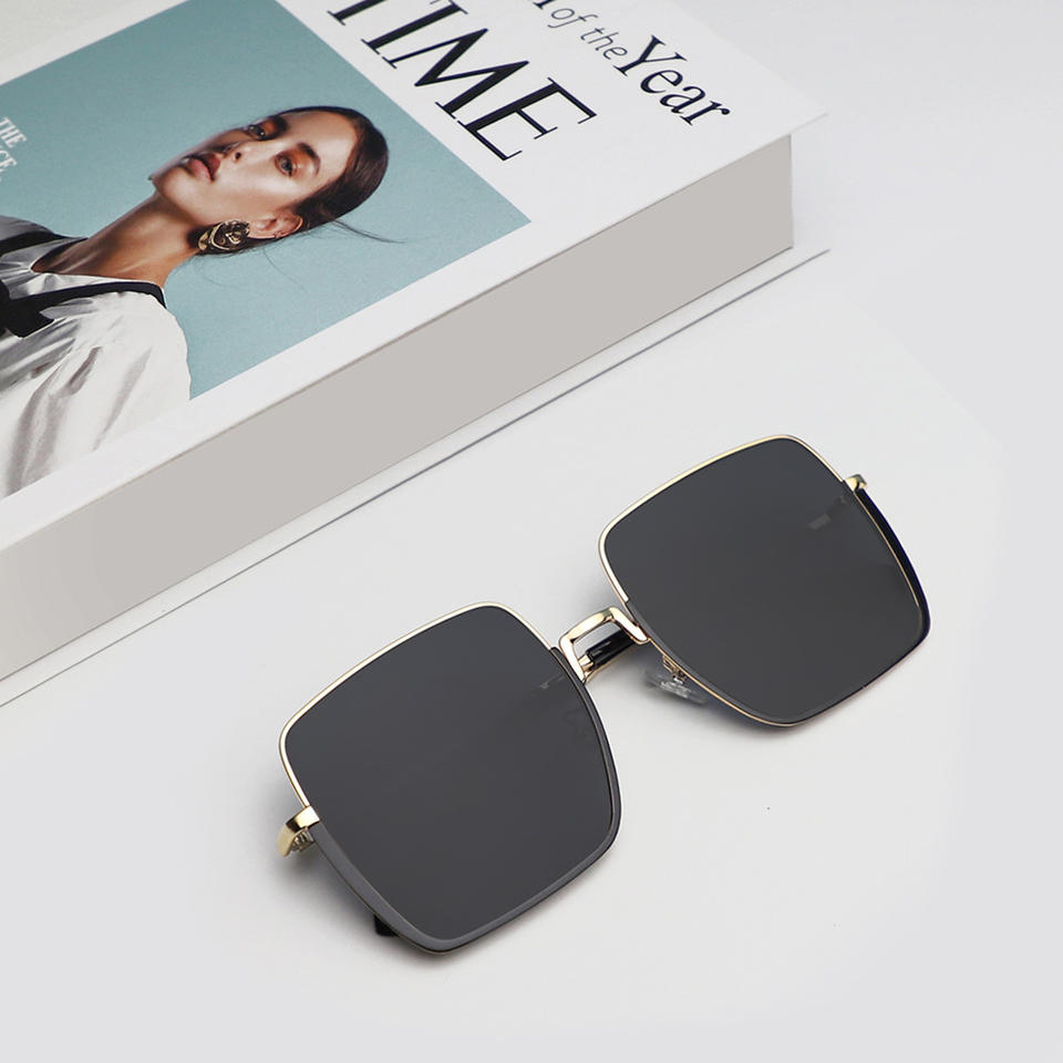 แว่นกันแดดโลหะทรงเหลี่ยมสำหรับผู้หญิง รุ่นใหม่ ป้องกันรังสียูวี 400 เลนส์โพลาไรซ์สีชมพู วัสดุ PC ดีไซน์ทันสมัยสไตล์สตรีทแฟชั่น