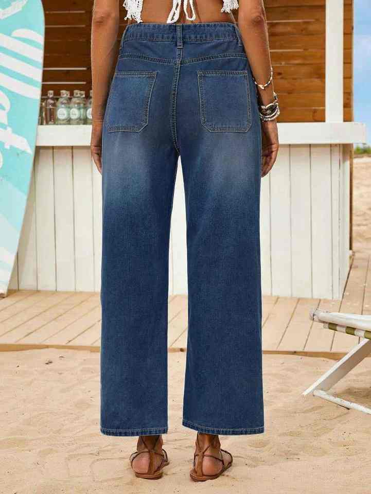 กางเกงเอวกลางเก้าจุดของผู้หญิงใหม่กางเกงยีนส์ผ้าฝ้ายระบายอากาศได้ดีมีกระดุมยางยืดดีไซน์เรียบย้อม DenimPCS-R-143