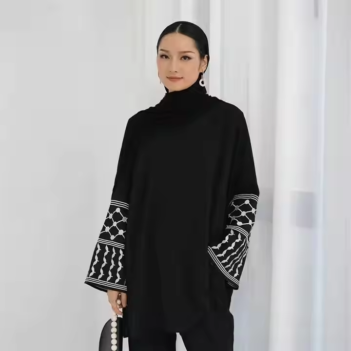 เซ็ตเสื้อคอกลมปักลายสำหรับผู้หญิง, ใหม่ชุดลำลองกางเกงขากว้าง