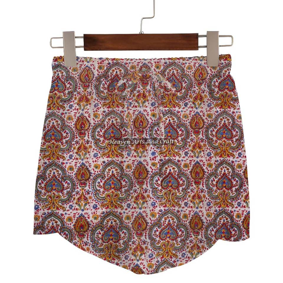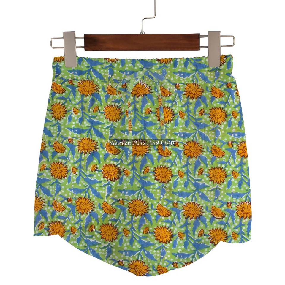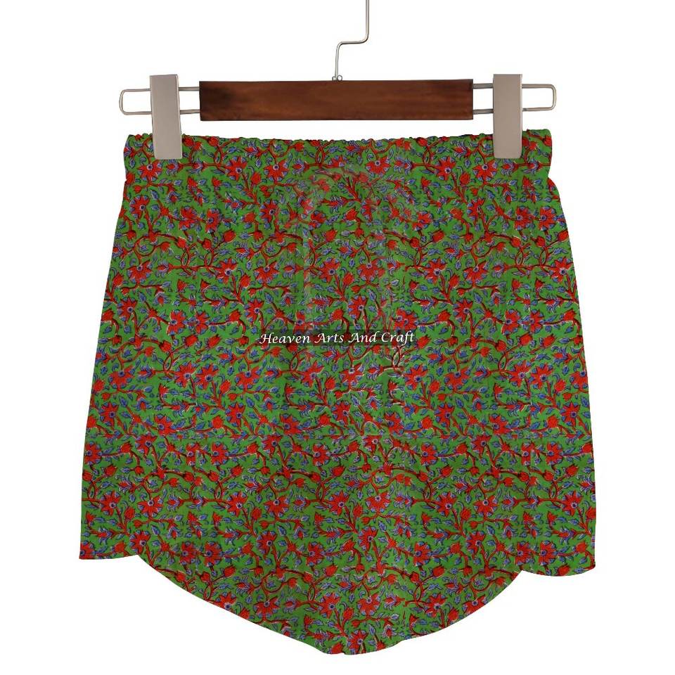 ชื่อสินค้า:กางเกงขาสั้นผ้าฝ้าย 100% พิมพ์ลายบล็อกมือ