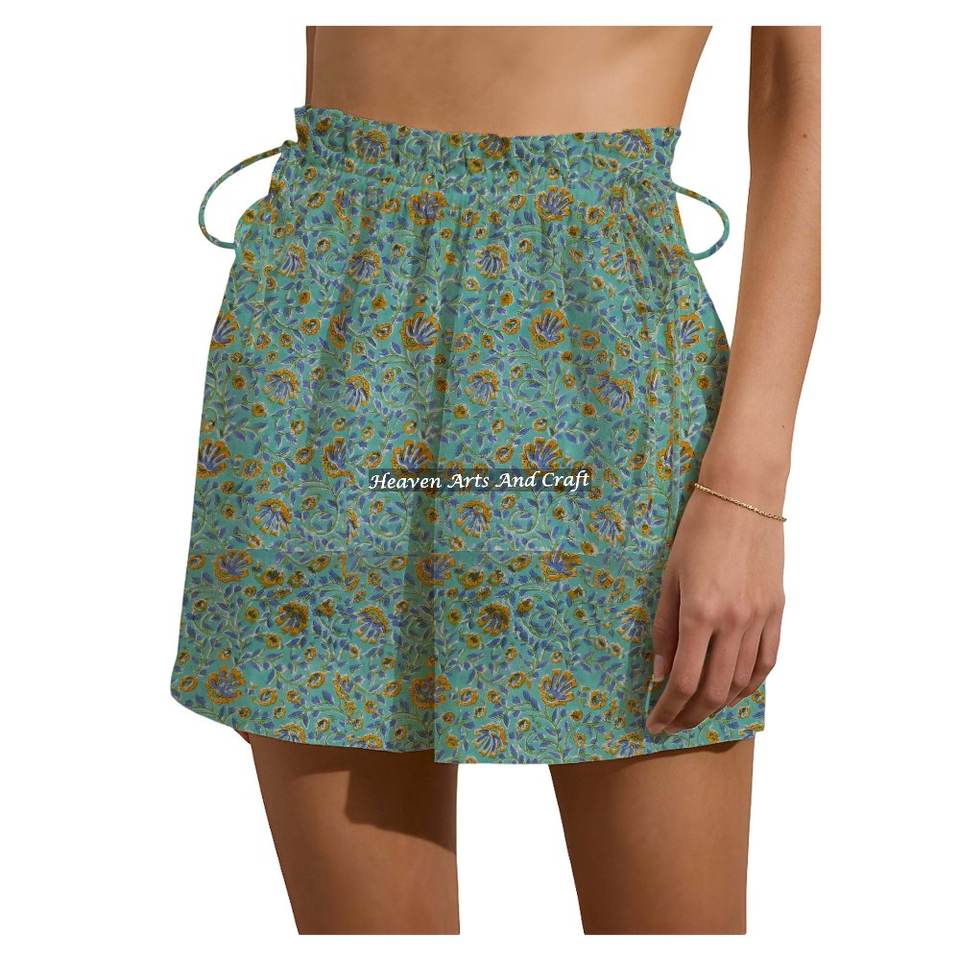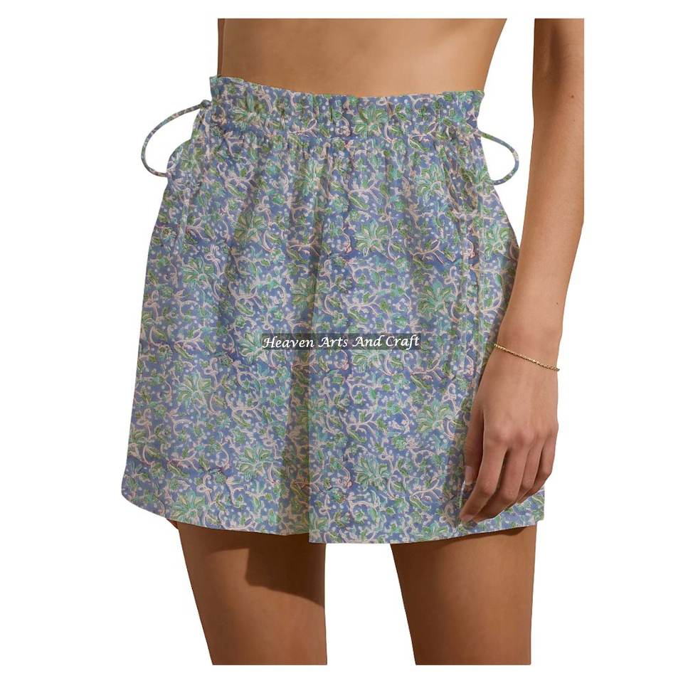 ชื่อสินค้า:กางเกงขาสั้นผ้าฝ้าย 100% พิมพ์ลายบล็อกมือ ใส่สบายๆ วันหยุดสุดสัปดาห์