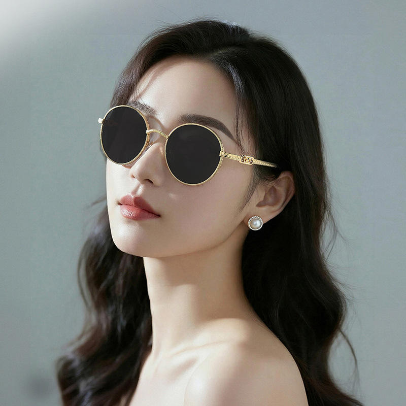 แว่นกันแดดโลหะทรงกลมสำหรับผู้หญิงรุ่นใหม่ ป้องกันรังสียูวี 400 เลนส์ 3 แบบ ดีไซน์ทันสมัยสไตล์สตรีทระดับไฮเอนด์