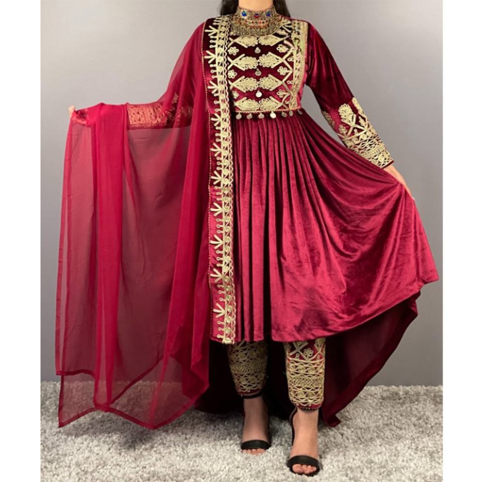 ชุดเดรสลำลองปักลายชนเผ่าปักเลื่อมงานแฮนด์เมดสำหรับผู้หญิงใหม่สำหรับวัฒนธรรมแบบเรียบง่ายของอัฟกานิสถาน