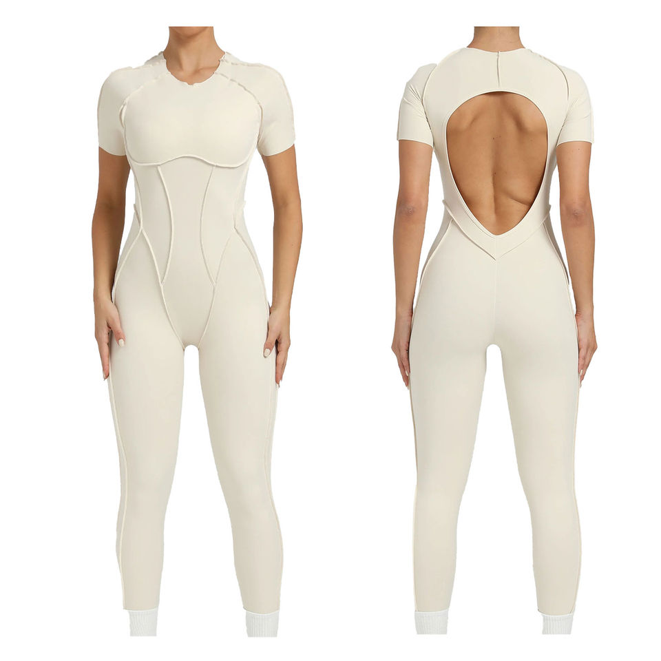 ชุดบอดี้สูทกีฬาผู้หญิงแบบใหม่ คุณภาพสูง เปิดหลัง ชุดออกกำลังกายโยคะ ฟิตเนส แอคทีฟแวร์ ผ้ายืด/ไนลอน