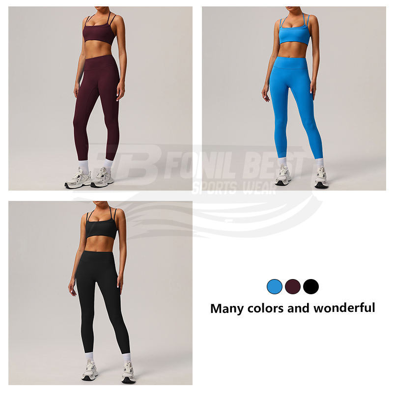ชุดกีฬาผู้หญิงแบบใหม่ สายรัดปรับได้สูง เสื้อชั้นในออกกำลังกายแบบผูกคอ กางเกงออกกำลังกายยกกระชับสะโพก กางเกงโยคะ ระบายอากาศได้ดี เป็นมิตรกับสิ่งแวดล้อม