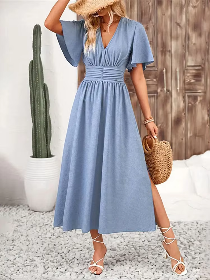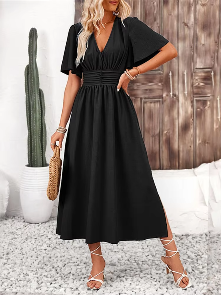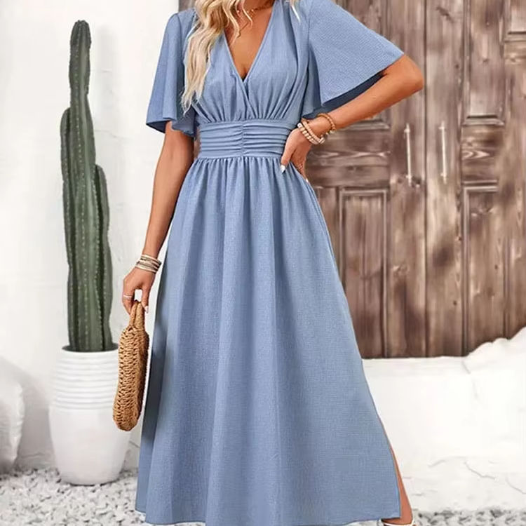 ชุดเดรสยาวทรงเอไลน์สำหรับผู้หญิง, ชุดลำลองสำหรับผู้หญิงชุดเดรสแขนสั้นเสื้อผ้าผู้หญิงใหม่ฤดูร้อนที่หรูหรา