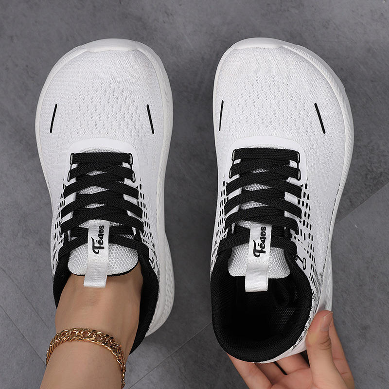 รองเท้าผ้าใบผู้หญิงรุ่นใหม่ล่าสุด ฤดูใบไม้ร่วง 2026 พื้นหนา เพิ่มความสูง สไตล์ Fly Knit สีขาว สำหรับใส่ลำลองและเล่นกีฬา