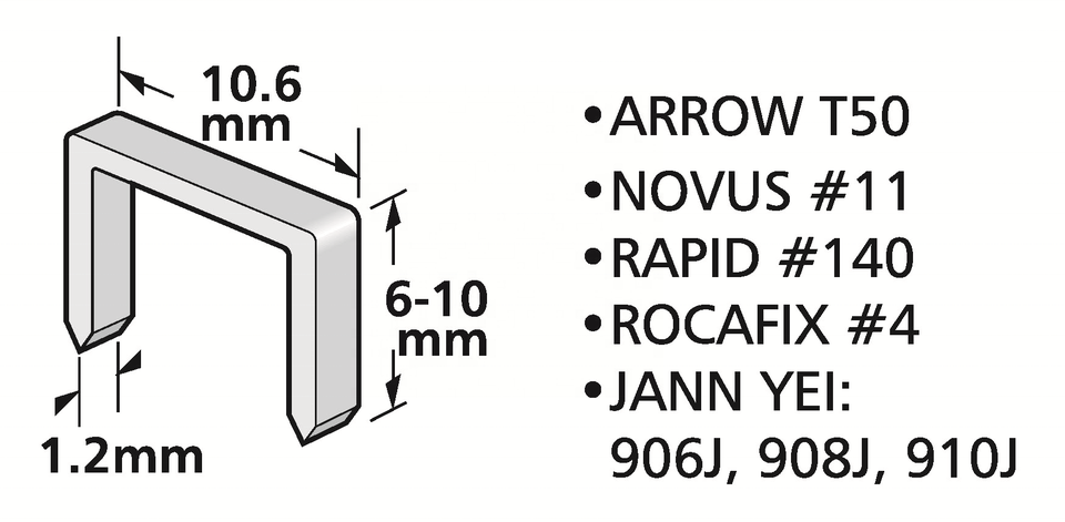 ใช้ลวดเย็บกระดาษ Jannyei:906F,908F, 1206F 910F, 1208F
