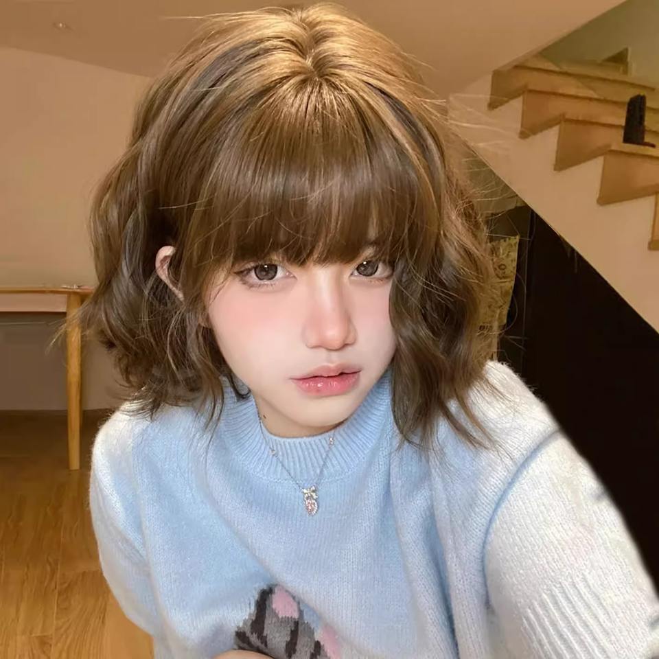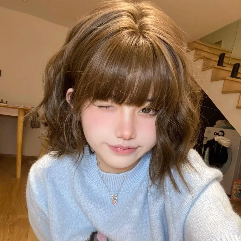 เลือกเลยสี: ผมหยิกสั้นสไตล์เกาหลี [สีน้ำตาลเย็น] + ผม