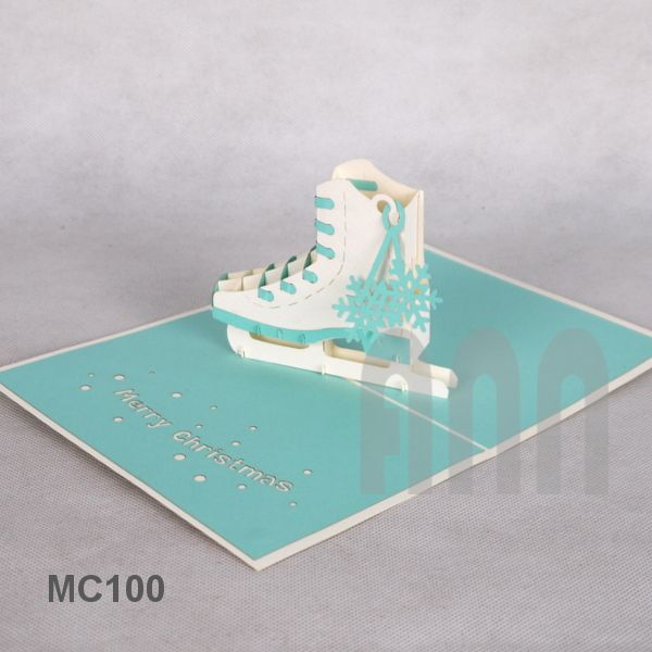 การ์ดเชิญแบบด้านสำหรับปีใหม่การ์ด3D ของขวัญคริสต์มาสแบบป๊อปอัพไอซ์สเก็ตการ์ดอวยพรกระดาษของที่ระลึกพิมพ์ลายแบบออฟเซ็ตเวียดนาม
