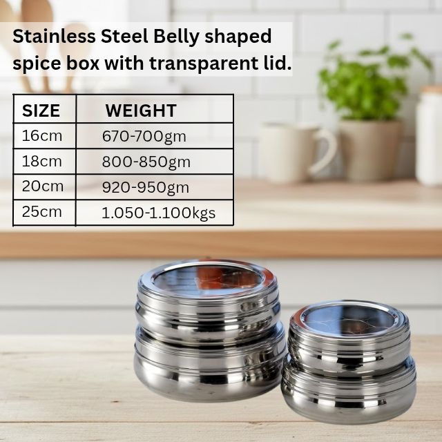 กล่องเครื่องเทศ Masala รูปทรงท้องทำจากสแตนเลส