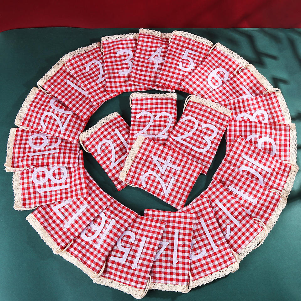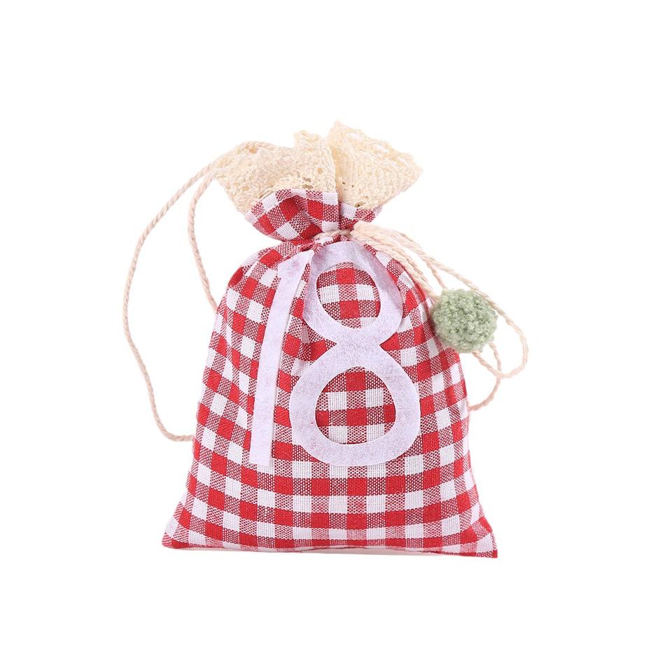 ชุดขนมสายไหมพิมพ์ลายสำหรับปีใหม่1-24ชุดกระเป๋าปฏิทินมีเชือกรูดดีไซน์ลายคริสต์มาสลายตารางหมากรุกรีไซเคิลได้