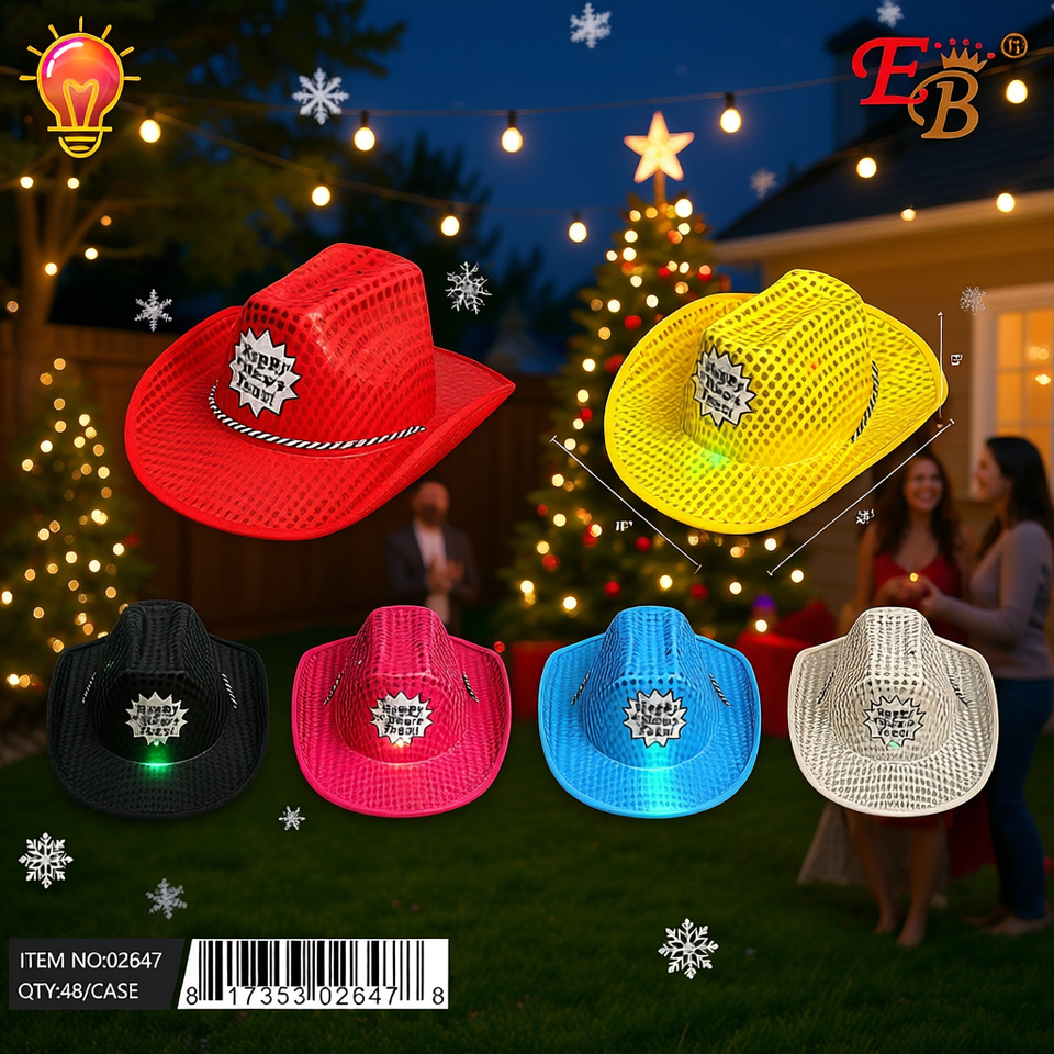 หมวกคาวบอย EB พร้อมไฟ ขนาด 58-60 ซม. สำหรับงานปาร์ตี้ คริสต์มาส กิจกรรมกลางแจ้ง แบบ unisex ลายทาง ทำจากผ้าฝ้าย EVA โพลีเอสเตอร์