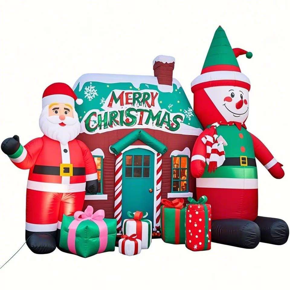 3D วันส่งท้ายปีเก่าทำจากพีวีซีรถพองได้ซานตาคลอสกับตุ๊กตาหิมะ5เมตรตกแต่งสนามคริสต์มาสสำหรับงานอีเว้นท์