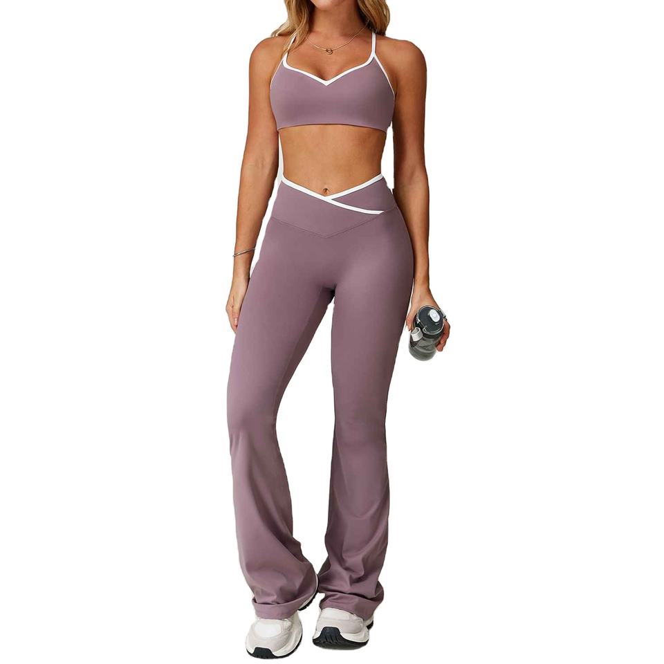 ชุดโยคะใหม่สำหรับผู้หญิง ชุดออกกำลังกายกันกระแทก บราออกกำลังกายและเลกกิ้งทรงบานกระชับสัดส่วน ชุดกีฬาสำหรับออกกำลังกาย ชุดโยคะ