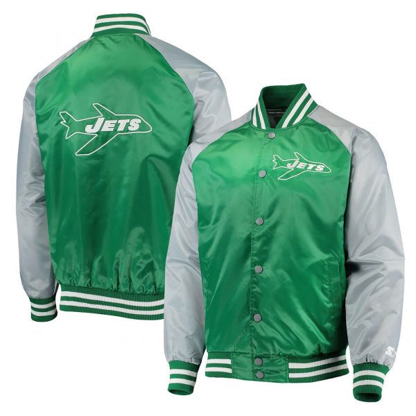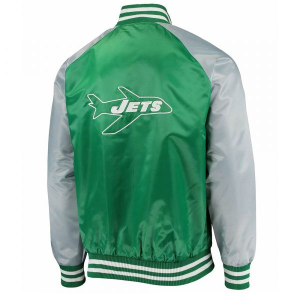 แจ็คเก็ตวาร์ซิตี้สีเขียวและสีเงินแบบซาตินจากนิวยอร์ก