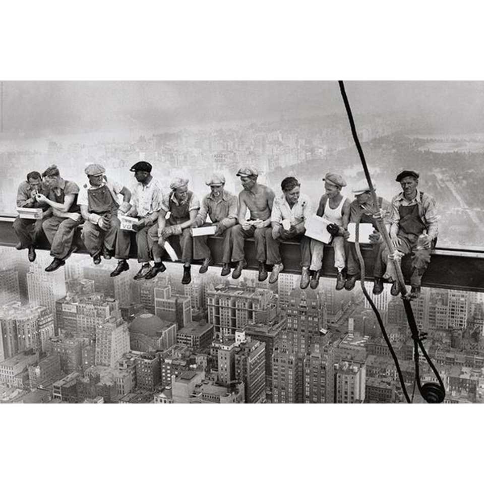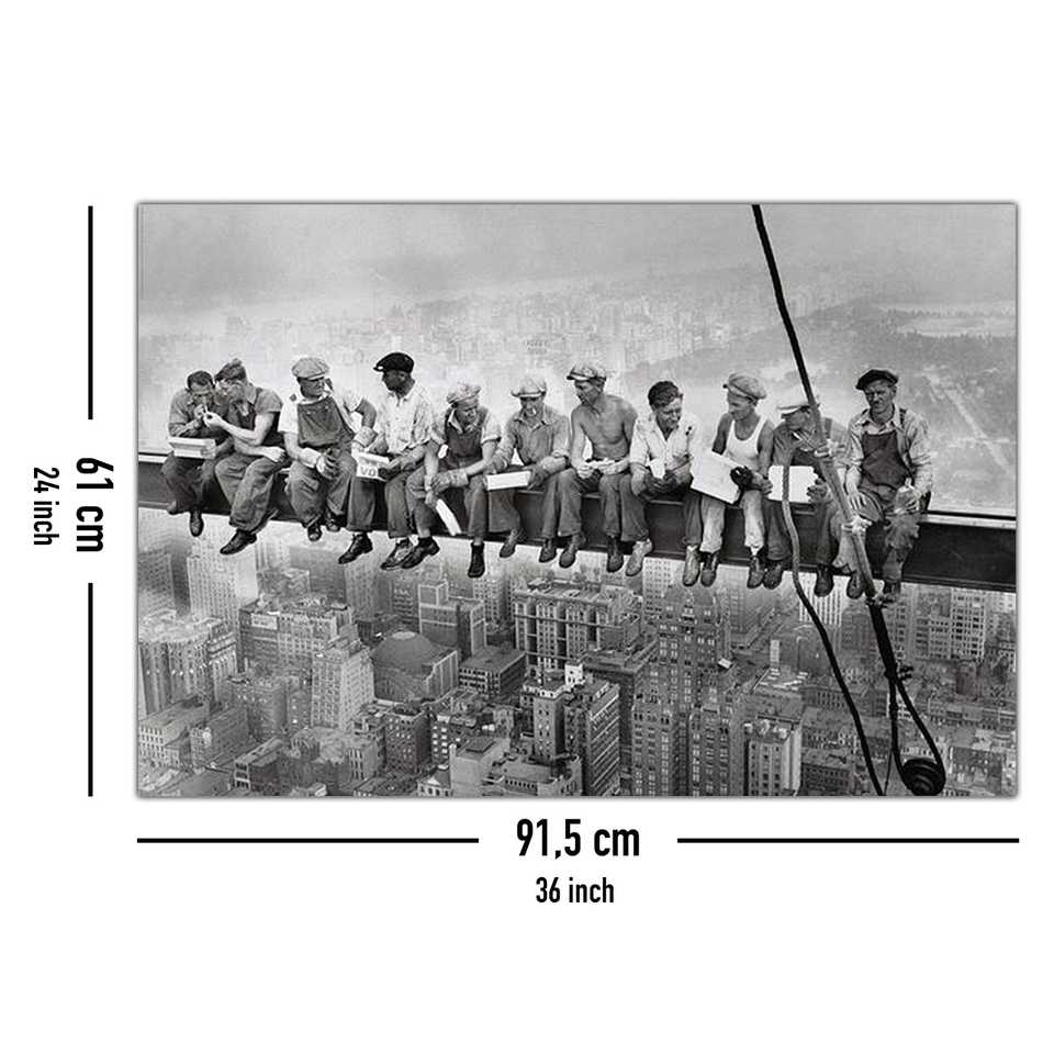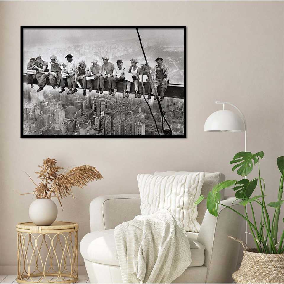 นิวยอร์ก แมนฮัตตัน โปสเตอร์ผ้าใบติดผนังพร้อมกรอบสีดำ "การรับประทานอาหารเหนือแมนฮัตตัน" พิมพ์ลาย