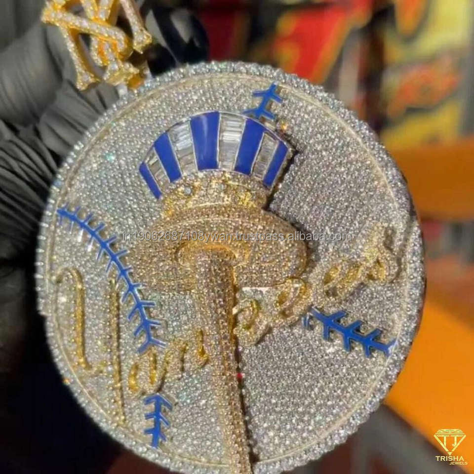 YORK yankees จี้มงกุฎพร้อม VVS Moissanite ประกายเพชรประดับแฟนเบสบอลที่กำหนดเองเครื่องประดับฮิปฮอปชุบทอง