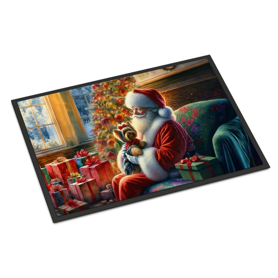 Yorkie Santa claus Yorkshire Terrier doormat 18H x 27W ในร่มกลางแจ้งกันลื่นซักได้พรมขนสั้นสำหรับประตูหน้าทางเข้า