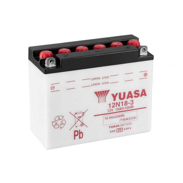 แบตเตอรี่มอเตอร์ไซค์ยูอาสะ รุ่นใหม่ 12N18-3 12V 18Ah 140A CCA 216Wh ผลิตในอิตาลี