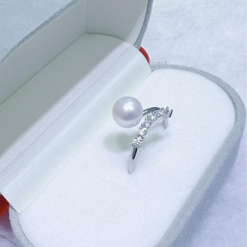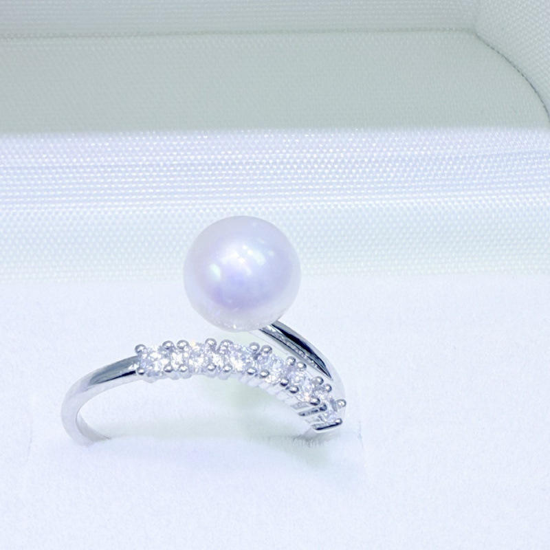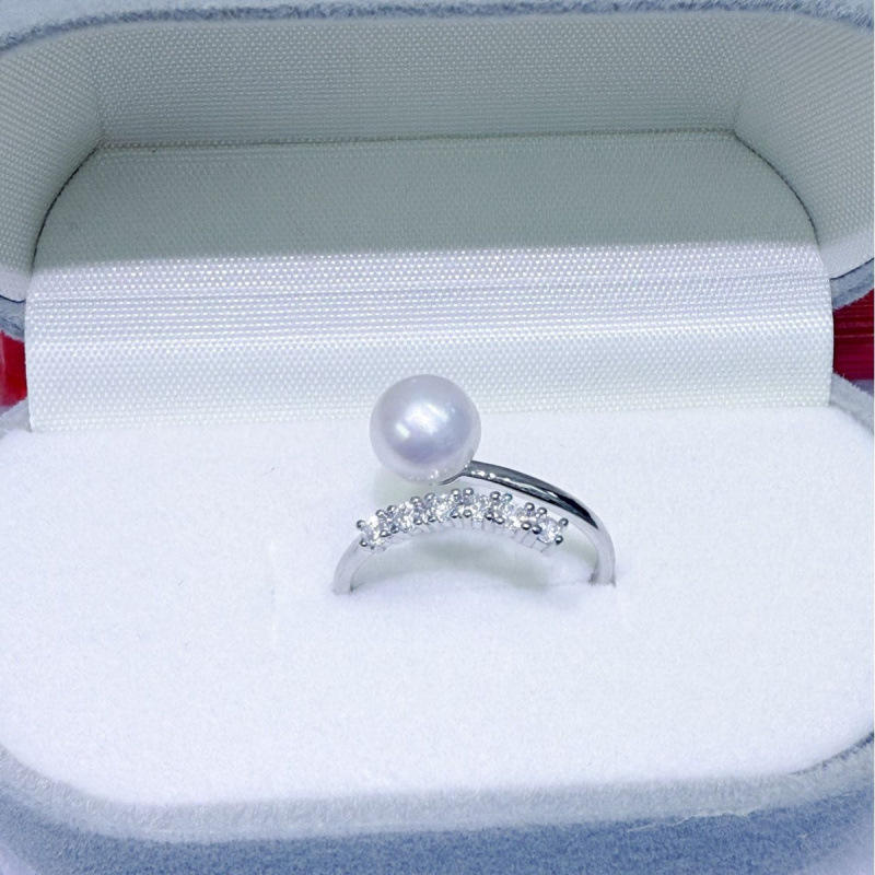แหวนมุกน้ำจืดทรงกลมขนาด 7-8 มม. ของแท้จากจูจี้ คุณภาพเกือบไร้ตำหนิ ใช้ได้หลากหลาย ตัวเรือนเงินแท้ ผลิตในจีน