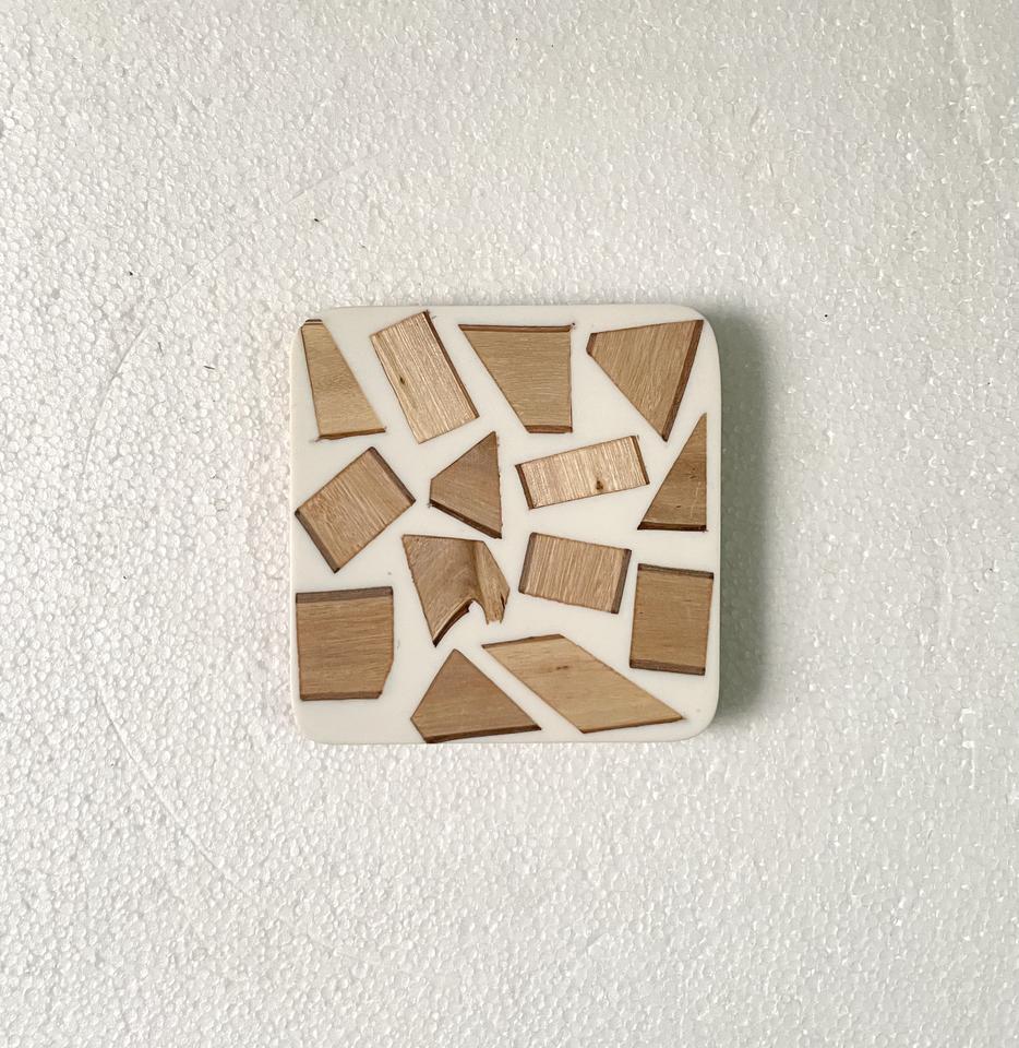 ถาดรองแก้วไม้และเรซินลายซิกแซกดีไซน์เนอร์ใหม่สำหรับสำนักงานที่บ้าน